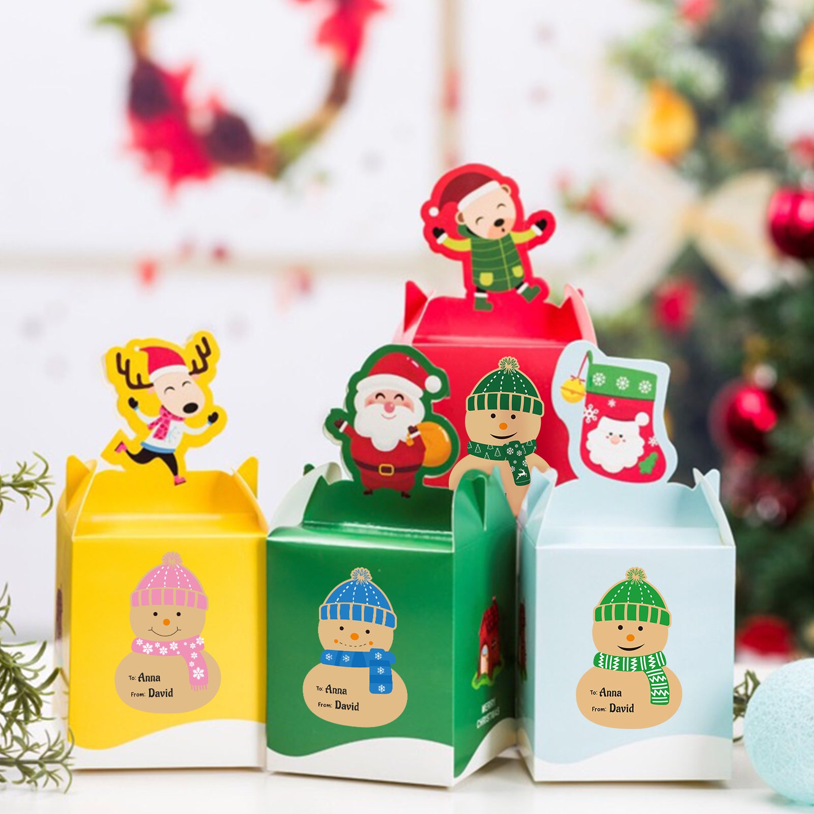 - [WIDE APPLICATIONS]- Xmas gift name tags labels stickers are perfect for decorating envelopes, cards, gift boxes, cookies treat bags, potted plants, etc., suitable for Christmas parties to let your family and friends have a warm winter together. Great holiday name tags stickers for kids and adults.