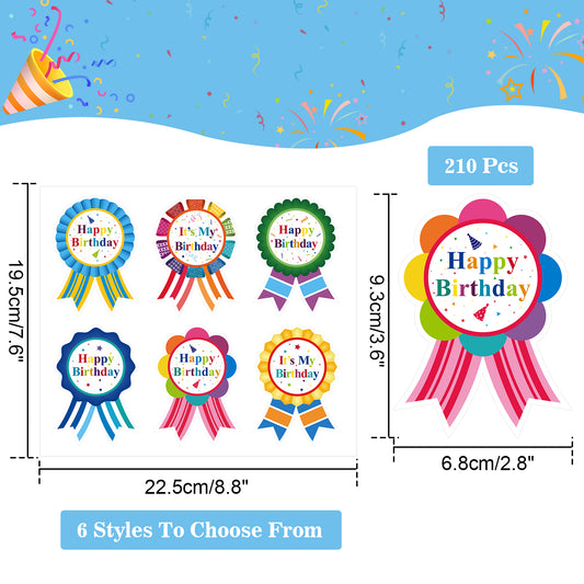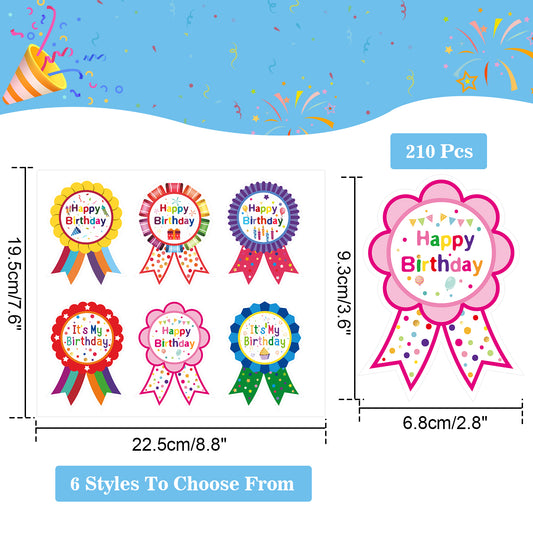 Anwyll Birthday Gift Stickers,Happy Birthday Badge Stickers,210 Pcs It's My Birthday Stickers Labels for Kids Children Teacher Clothing Cake Birthday Party Decorations Home Classroom Supply(2.8×3.6'')