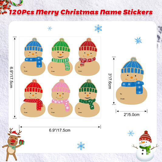 Anwyll Christmas Gift Name Tags Stickers,Self-Adhesive to from Christmas Snowman Labels Stickers,120Pcs 3×2Inch Kraft Xmas Snowman Holiday Name Tags Labels Stickers for Envelope Gift Present Packaging
