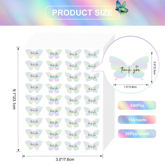Anwyll Butterfly Thank You Gift Stickers,540Pcs Holographic Rainbow Foil Thank You Stickers Small Business,Self-Adhesive Butterfly Thank You Party Favors Stickers for Packaging Birthday Baby Shower