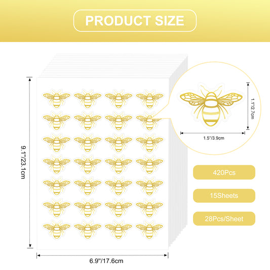 Anwyll Bee Stickers,Gold Foil Envelope Seals Stickers,420Pcs Queen Bee Labels Decals Stickers,Self-Adhesive Spring Gold Foil Bee Sticker for Invitation Card Gift Wrap Bee Day Wedding Party Baby Shower