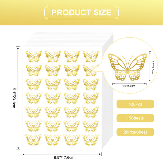 Anwyll Butterfly Stickers,Gold Foil Envelope Seals Stickers,420Pcs Butterfly Preference Stickers,Self-Adhesive Spring Butterfly Labels Stickers for Invitation Card Gift Wrap Wedding Party Baby Shower