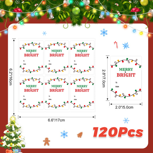 Anwyll Christmas Gift Tags Stickers,Christmas Name Tags Stickers,120Pcs 2x3'' Self-Adhesive Holiday Present Tags Labels Stickers,Light Xmas to from Gift Tags Stickers for Envelope Card Gift Packaging